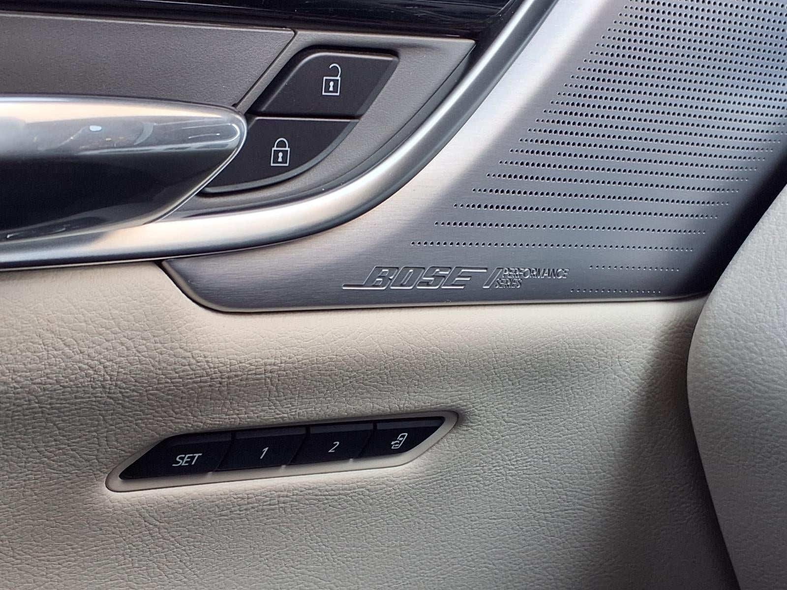 - Audio system feature, Bose Performance Series 14-speaker system includes Cadillac speaker grille pattern